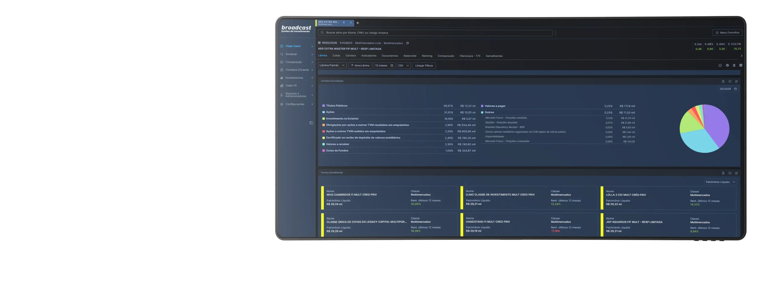 Utilize dados em tempo real e históricos da plataforma Broadcast, garantindo informações precisas para decisões estratégicas