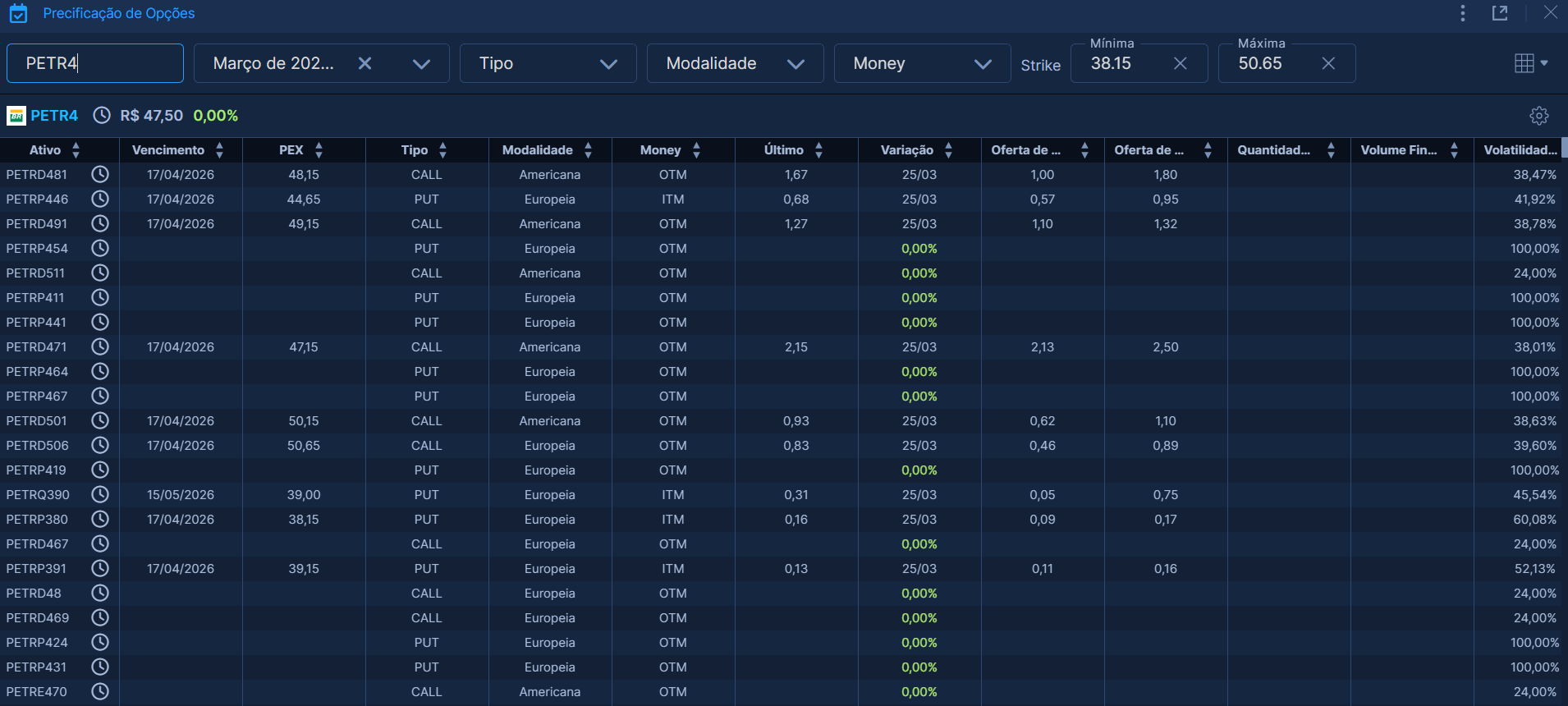 Precificação de opções